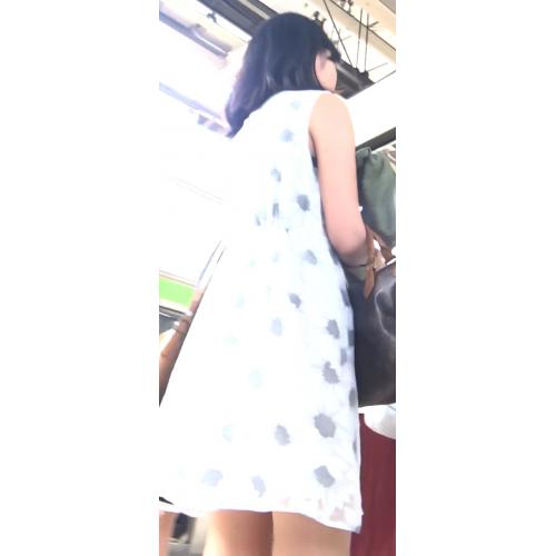 彼女は白の花柄ミニスカワンピースを着ていました。なかなか丈が短いスカートでしたので、パンツが撮れそうな感じがしました。そこですぐにカメラをセットして撮影開始です。少しずつ彼女に近づいていきます。