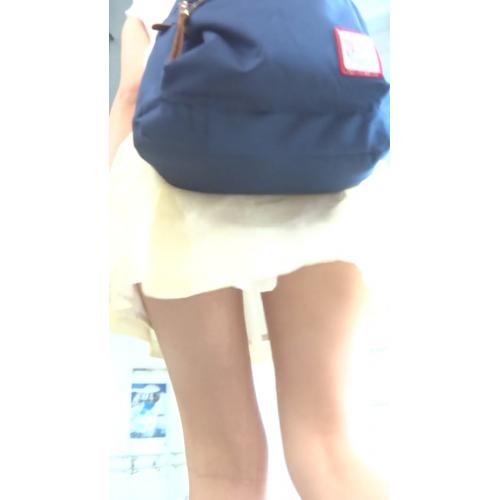 パンチラ盗撮 女子大生 レース付き白パンツに超接近