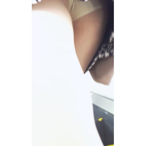 ベージュのパンストに透ける白パンツを激撮しました。