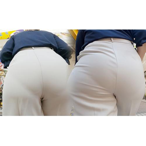 大きなお尻が「より」強調されてしまうフレアパンツにパンティーラインを浮かべる爆尻極上モデル。
