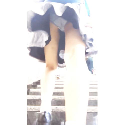 すると彼女は駅の改札へ続いていく上り階段の方へ向かって行きました。そこで彼女の後ろにくっついて歩きます。そして彼女が階段に足をかけたところでスカートの中へカメラを差し込みました。