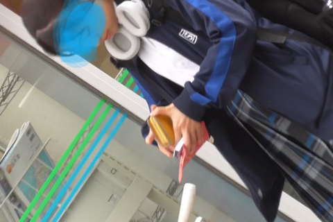 彼女は紺色のミニスカートを履いていました。スカートのプリーツが弱めで裾がヒラヒラのタイプだったので、これはパンツが見えそうです。そこですぐにカメラを準備して撮影を開始しました。彼女を尾行していきます。