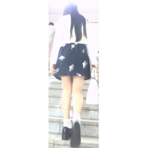 すると彼女は駅の改札へ続く上り階段の方へ歩いて行きました。そこでバレないように彼女の背後に回ります。そして彼女が階段に足をかけたところでスカートの中へカメラを差し込みました。