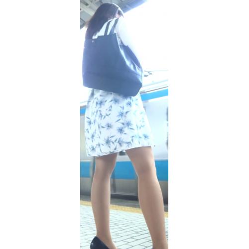 彼女は水色の花柄ミニスカートを履いていました。プリーツが付いていないスカートだったのでパンツが撮れそうに見えました。そこでカメラを準備して撮影開始です。