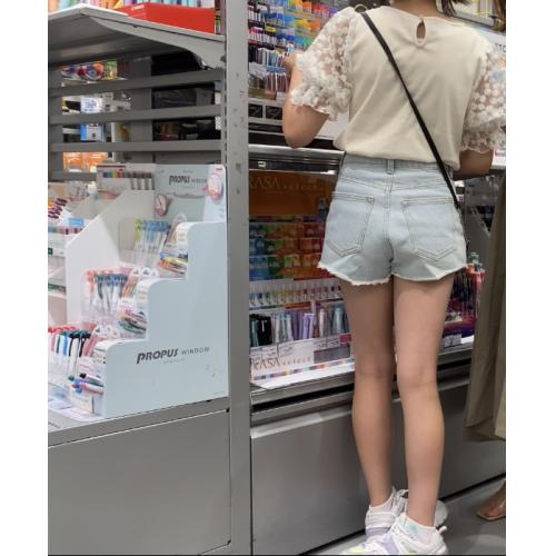 デニムショーパンの足が長いすべすべ太ももの女の子です。