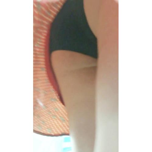 JDパンチラ盗撮 超ミニスカート パンチラガードされたけど黒パンツ強引撮影