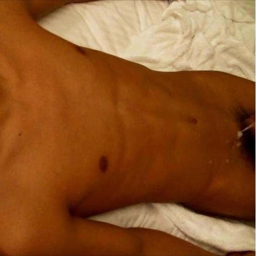 ローションで亀頭を責められ、徐々に感じていくスリムな体。感じるたびに腰をひねらせ割れる腹筋がエロい。