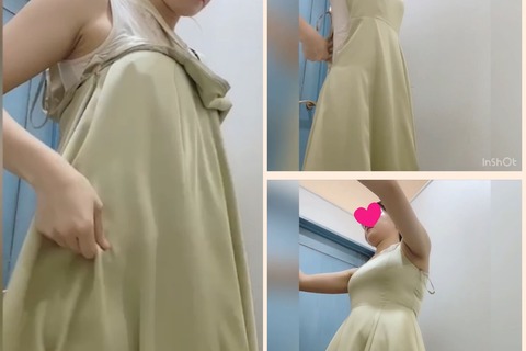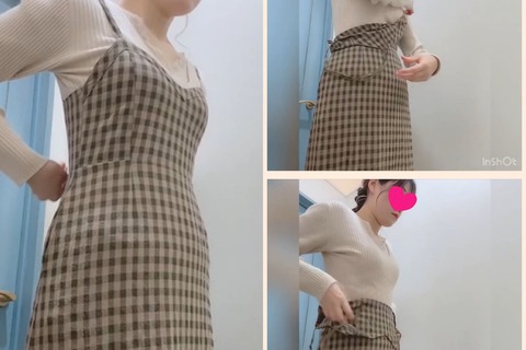 【試着室/小型カメラ盗撮】秋色チェックワンピースが似合う美女を隠し撮り(mp4)