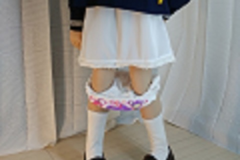 動画はそのおしっこシーシーシチュエーション(液体の放出はありません)と、正面からスカートめくってパンツを脱がす2シーンをお届け致します。
