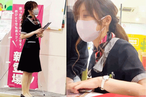 11某携帯ショップの色白儚げ美人店員さん♡胸チラ&テーブル下でこっそり食い込み直し♥